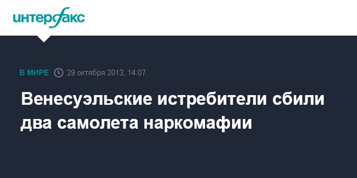Каракас. 29 октября. INTERFAX.RU - Истребители Су-30МК2 ВВС Венесуэлы сбили два самолета наркомафии после того, как все попытки принудить их к посадке на аэродром окончились неудачей.