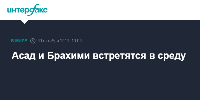 Дубай. 30 октября. INTERFAX.RU - Спецпосланник ООН и Лиги арабских государств Лахдар Брахими позже в среду проведет встречу с президентом Сирии Башаром Асадом, сообщает межарабский телеканал "Аль-Арабийя" со ссылкой на дипломатические источники.