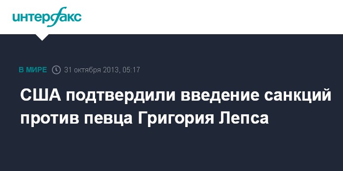 Москва. 31 октября. ИНТЕРФАКС - Москва была заблаговременно уведомлена о введении санкций против российских граждан, в том числе певца Григория Лепса.