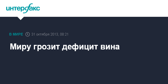 Лондон. 31 октября. INTERFAX.RU - Миру грозит дефицит вина, и спрос на этот напиток уже превышает предложение, предупреждает американская финансовая корпорация Morgan Stanley.