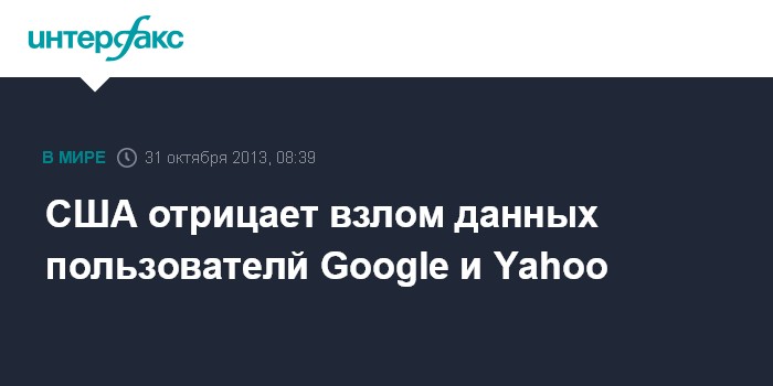 Лондон. 31 октября. INTERFAX.RU - Агентство национальной безопасности США отрицает, что тайно перехватывало коммуникации между центрами обработки данных Yahoo и Google, получая доступ к миллионам аккаунтов пользователей по всему миру.