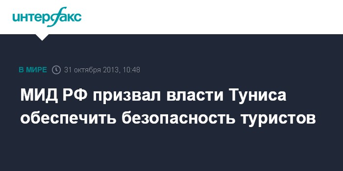 Москва. 31 октября. INTERFAX.RU - МИД России призвал тунисские власти предпринять все необходимые меры для обеспечения безопасности иностранных туристов, говорится в сообщении на сайте Ростуризма в четверг.