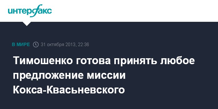 Тимошенко готова принять любое предложение миссии Кокса-Квасьневского