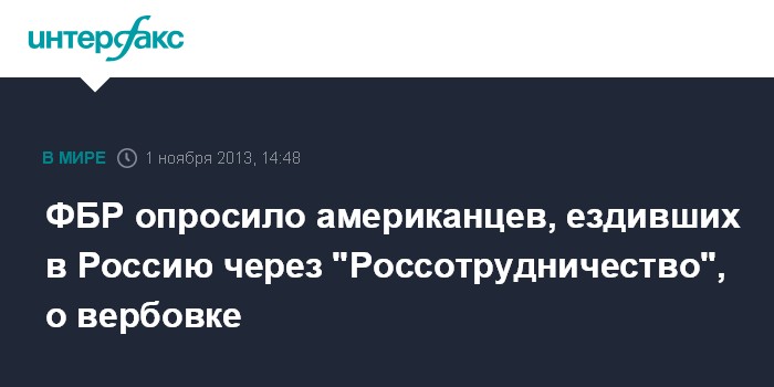 ФБР опросило американцев, ездивших в Россию через "Россотрудничество", о вербовке