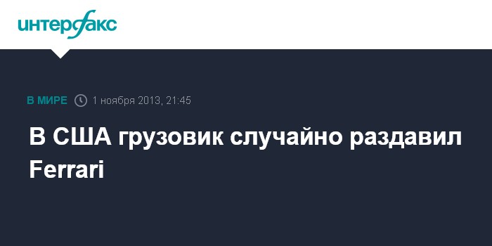 Лондон/Вашингтон. 1 ноября. INTERFAX.RU - В Нью-Йорке грузовик раздавил новый автомобиль марки Ferrari стоимостью $300 тысяч.