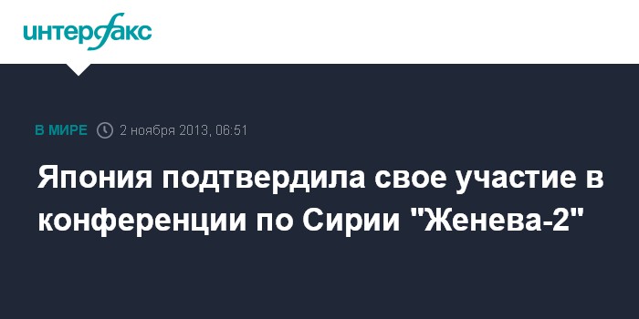 Токио. 2 ноября. ИНТЕРФАКС - Япония намерена участвовать в новой международной конференции по Сирии "Женева-2".