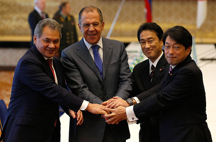 В субботу Лавров и Шойгу также встретились с премьер-министром Японии Синдзо Абэ. Лавров передал ему привет и пожелания всего самого лучшего от Владимира Путина. По его словам, президент России придает принципиальное значение развитию отношений с Японией во всех областях.