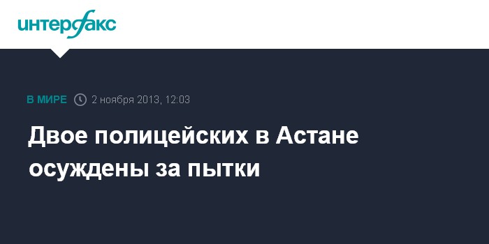 Астана. 2 ноября. INTERFAX.RU - Суд N2 Астаны вынес приговор по обвинению в пытках заместителю начальника УВД района Алматы столицы Кахзахстана Арману Садвакасову и начальнику отдела розыска того же района Д.Кусаинову. А.Садвакасов получил 3 года лишения свободы, а Д.Кусаинов - 1 год и 6 месяцев, сообщила в субботу столичная прокуратура.