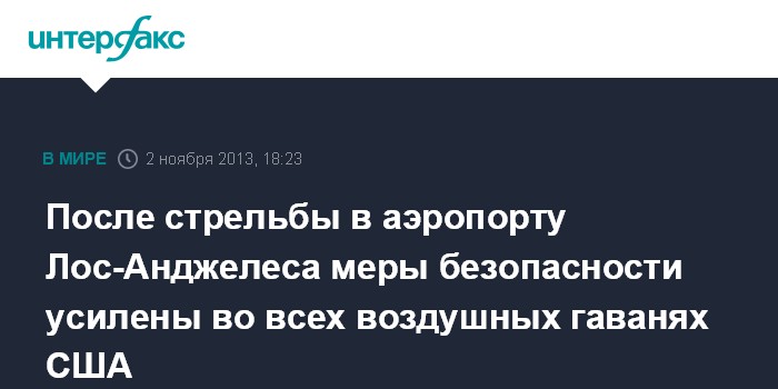 Накануне интернет-портал американской газеты Los Angeles Times сообщил о гибели от ранений в результате стрельбы в аэропорту сотрудника Управления транспортной безопасности США. Ранения получили еще три или четыре сотрудника Управления. Стрельба произошла в зоне досмотра пассажиров.
