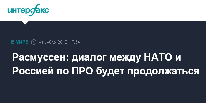 Расмуссен: диалог между НАТО и Россией по ПРО будет продолжаться