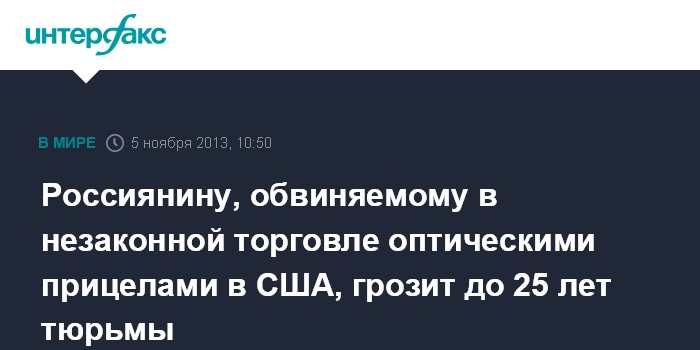 Россиянину, обвиняемому в незаконной торговле оптическими прицелами в США, грозит до 25 лет тюрьмы