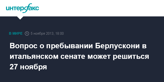 Вопрос о пребывании Берлускони в итальянском сенате может решиться 27 ноября