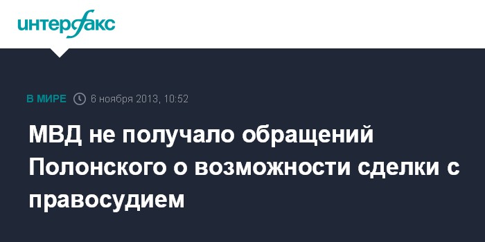 МВД не получало обращений Полонского о возможности сделки с правосудием