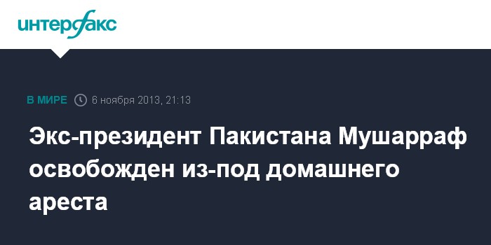 Как сообщалось, 10 октября полиция Пакистана арестовала экс-президента спустя несколько часов после его освобождения из зала суда под залог. Основанием для нового ареста послужили обвинения в причастности экс-президента к убийству радикального религиозного лидера Абдула Рашида Гази при штурме Красной мечети в 2007 году.
