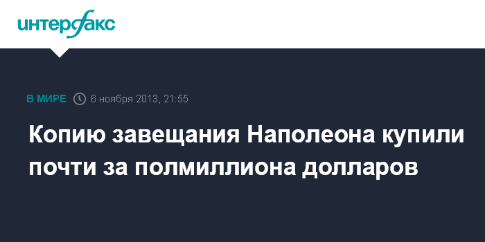 Копию завещания Наполеона купили почти за полмиллиона долларов