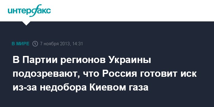 В Партии регионов Украины подозревают, что Россия готовит иск из-за недобора Киевом газа