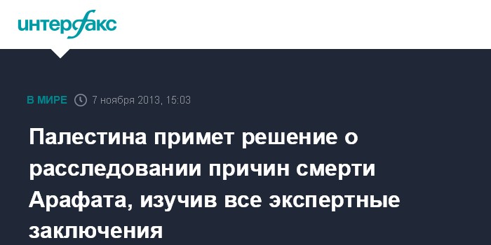 Москва/Париж. 7 ноября. INTERFAX.RU - Палестинские власти примут решение о дальнейших действиях по выяснению причин смерти Ясира Арафата после изучения заключений специалистов России, Швейцарии и Франции.