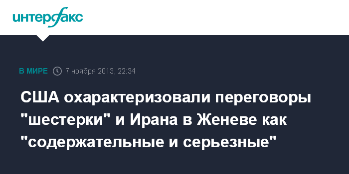 США охарактеризовали переговоры "шестерки" и Ирана в Женеве как "содержательные и серьезные"