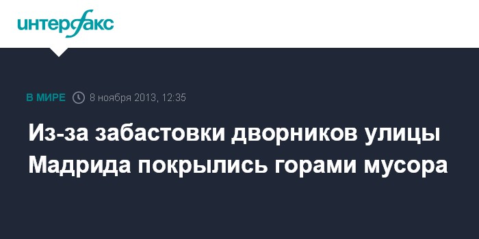 Мадрид. 8 ноября. INTERFAX.RU - В столице Испании уже четвертый день продолжается бессрочная забастовка мусорщиков и дворников.