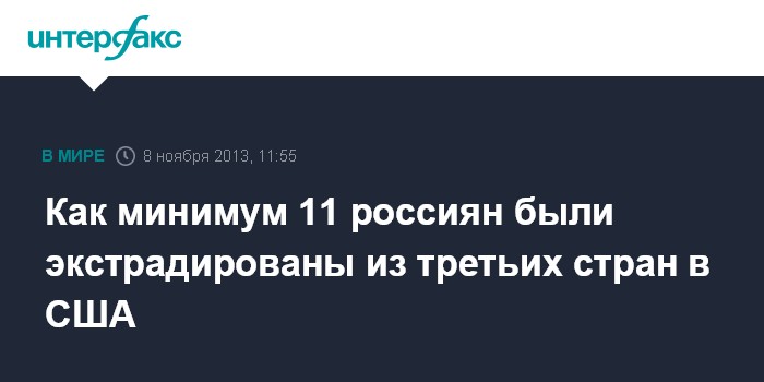 Москва. 8 ноября. INTERFAX.RU - Одиннадцать российских граждан за последние годы были экстрадированы из третьих стран в США в связи с предъявленными им обвинениями.