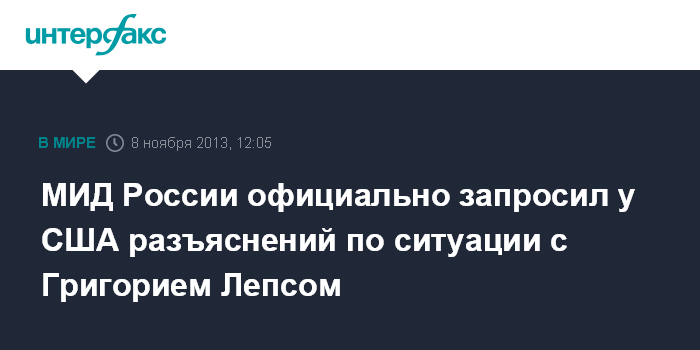 Москва. 8 ноября. INTERFAX.RU - Российский МИД обратился в компетентные органы США с просьбой разъяснить ситуацию вокруг известного певца Григория Лепса, которому запрещен въезд в США и наложен арест на его счета.
