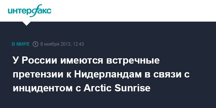 У России имеются встречные претензии к Нидерландам в связи с инцидентом с Arctic Sunrise