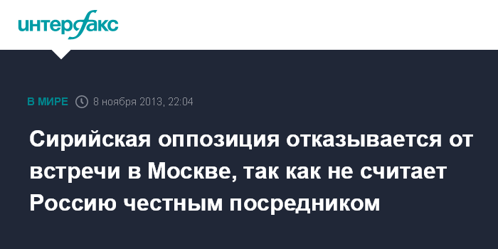 Сирийская оппозиция отказывается от встречи в Москве, так как не считает Россию честным посредником