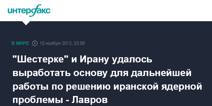 "Шестерке" и Ирану удалось выработать основу для дальнейшей работы по решению иранской ядерной проблемы - Лавров