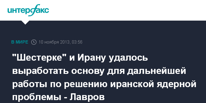 Женева. 10 ноября. ИНТЕРФАКС - "Шестерке" и Ирану в ходе нынешнего раунда переговоров удалось выработать основу для дальнейшей совместной работы по решению иранской ядерной проблемы, заявил глава МИД РФ Сергей Лавров.