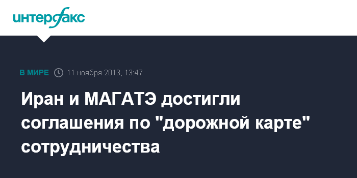 Дубай. 11 ноября. INTERFAX.RU - Глава организации по атомной энергии Ирана Али Акбар Салехи заявил в понедельник, что МАГАТЭ и Тегеран заключили соглашение по "дорожной карте" сотрудничества в области атомной энергетики, сообщает иранский телеканал "Пресс-ТВ".