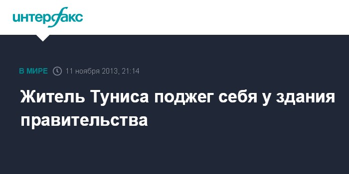 Каир. 11 ноября. INTERFAX.RU - Житель одного из бедных районов тунисской столицы попытался совершить акт самосожжения напротив здания правительства страны.