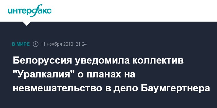 Белоруссия уведомила коллектив "Уралкалия" о планах на невмешательство в дело Баумгертнера