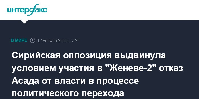Сирийская оппозиция выдвинула условием участия в "Женеве-2" отказ Асада от власти в процессе политического перехода
