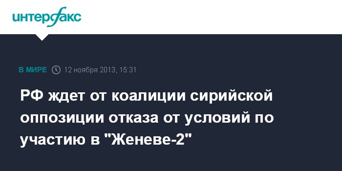 РФ ждет от коалиции сирийской оппозиции отказа от условий по участию в "Женеве-2"