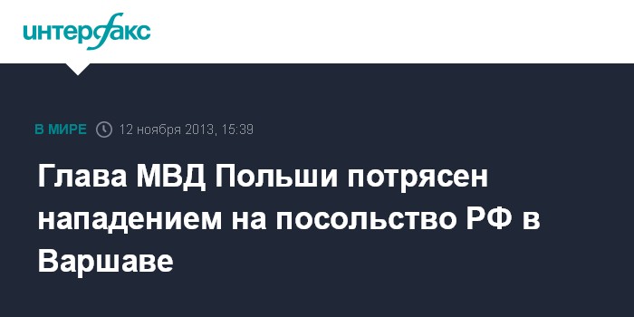 Варшава. 12 ноября. INTERFAX.RU - Глава МВД Польши Бартоломей Сенкевич назвал из ряда вон выходящим случаем нападение на российское посольство в Варшаве.