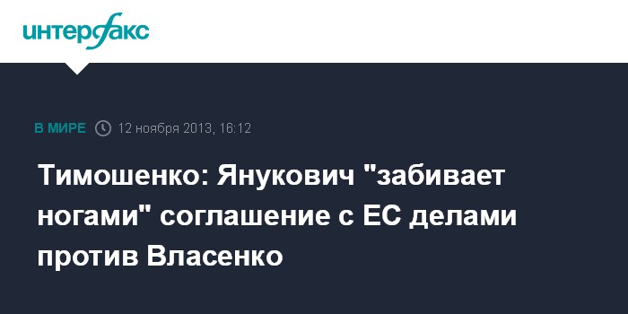 "Виктор Янукович последние недели уже насмерть ногами забивает соглашение об ассоциации. Возбуждение абсурдных уголовных дел против моего защитника Сергея Власенко сделано целенаправленно и хладнокровно, как последний удар в самое сердце украинских надежд на подписание соглашения", - говорится в заявлении Тимошенко, которое зачитала журналистам во вторник в Киеве дочь экс-премьера Евгения.