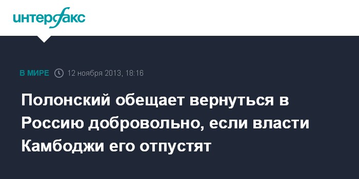 Полонский обещает вернуться в Россию добровольно, если власти Камбоджи его отпустят