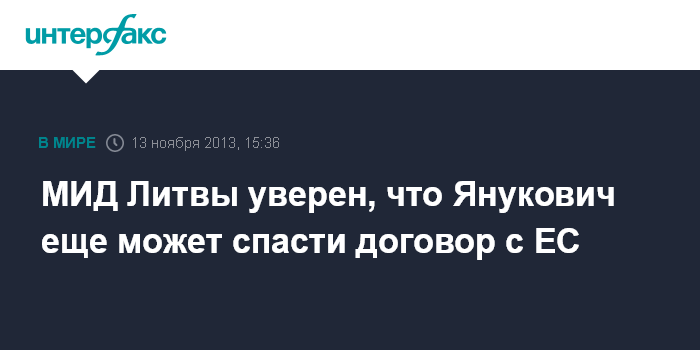 Вильнюс. 13 ноября. INTERFAX.RU - Президент Украины Виктор Янукович еще может спасти соглашение с Евросоюзом, если привлечет свои лидерские качества для принятия Киевом пакета законов, необходимых для евроинтеграции, заявил в среду министр иностранных дел Литвы Линас Линкявичюс.