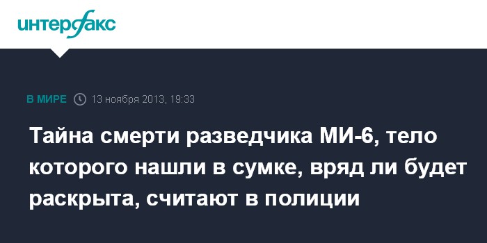 Тайна смерти разведчика МИ-6, тело которого нашли в сумке, вряд ли будет раскрыта, считают в полиции