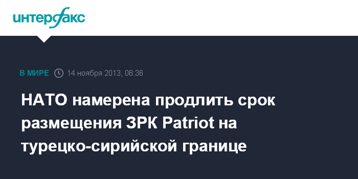 "Альянс регулярно оценивает ситуацию и необходимость размещения ракет Patriot (в Турции - ИФ). Ясно, что общие риски и угроза Турции остаются серьезными", - сообщают зарубежные СМИ.