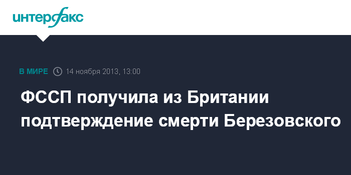 "Из посольства РФ в Великобритании поступила копия временного документа, подтверждающего смерть Березовского", - сообщили "Интерфаксу" в пресс-службе ФССП.