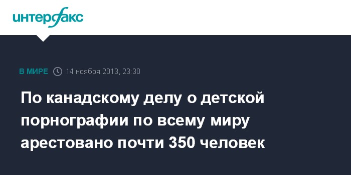 Вашингтон. 14 ноября. INTERFAX.RU - В ходе расследования дела о распространении детской порнографии, инициированного канадскими полицейскими, арестован 341 человек, говорится в заявлении полиции города Торонто.