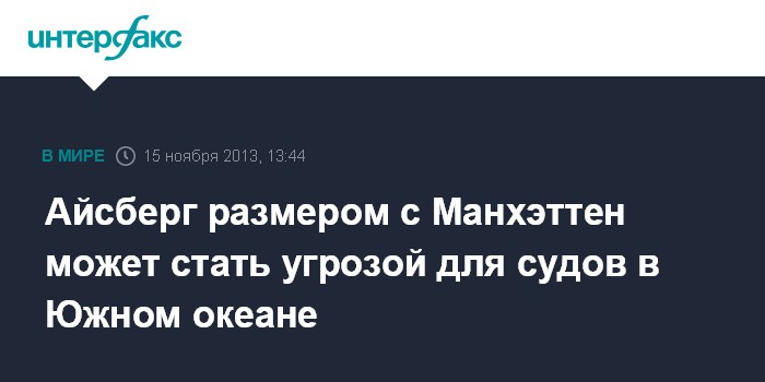 Лондон. 15 ноября. INTERFAX.RU - Айсберг размером в 87 кв. км, который откололся от ледника в Антарктике, представляет угрозу для международных судов, сообщают в пятницу британские СМИ со ссылкой на ученых.