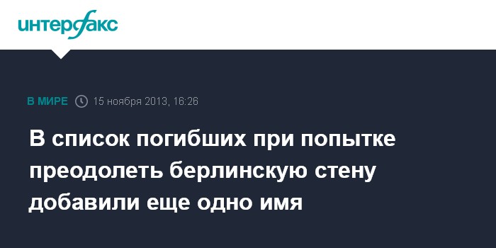 В список погибших при попытке преодолеть берлинскую стену добавили еще одно имя
