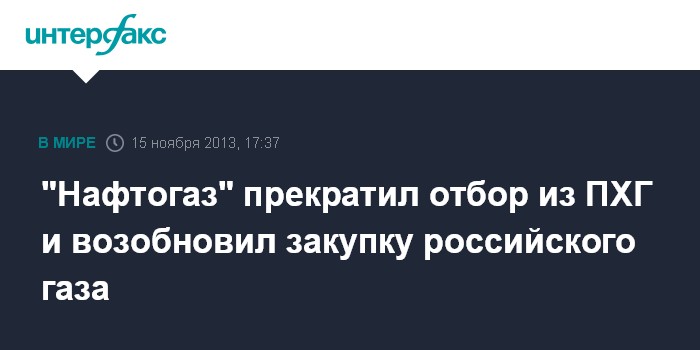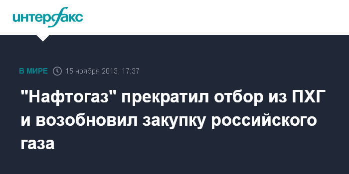 Москва. 15 ноября. INTERFAX.RU - НАК "Нафтогаз Украины" прекратила отбор газа из подземных хранилищ и возобновила закупку российского газа в соответствии с действующим контрактом, заявил журналистам председатель правления "Газпрома" Алексей Миллер.