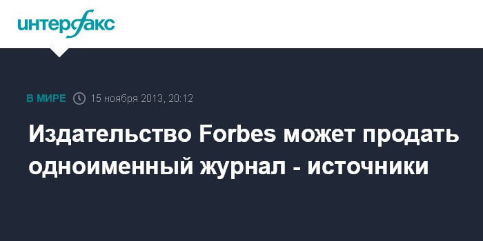 Нью-Йорк. 15 ноября. INTERFAX.RU - Американский издательский дом Forbes Media LLC, которым руководит экс-кандидат в президенты США от республиканцев Стив Форбс, рассматривает возможность продажи финансово-экономического журнала Forbes, сообщили агентству Bloomberg сразу четверо источников, знакомых с ситуацией.
