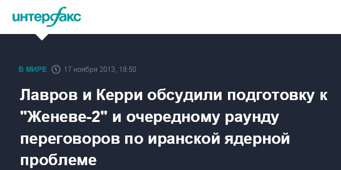 Москва. 17 ноября. ИНТЕРФАКС - Подготовку к международной конференции по Сирии "Женева-2", а также к очередному раунду переговоров "шестерки" посредников и Ирана, запланированному на предстоящей неделе, обсудили глава МИД РФ Сергей Лавров и госсекретарь США Джон Керри по телефону в воскресенье.