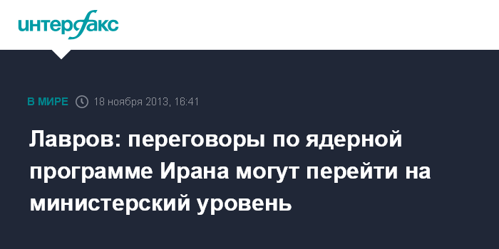 Москва. 18 ноября. INTERFAX.RU - Глава МИД РФ Сергей Лавров допускает возможность перехода очередного раунда переговоров "шестерки" с Ираном на уровне политдиректоров, который пройдет 20 ноября в Женеве, на министерский уровень.