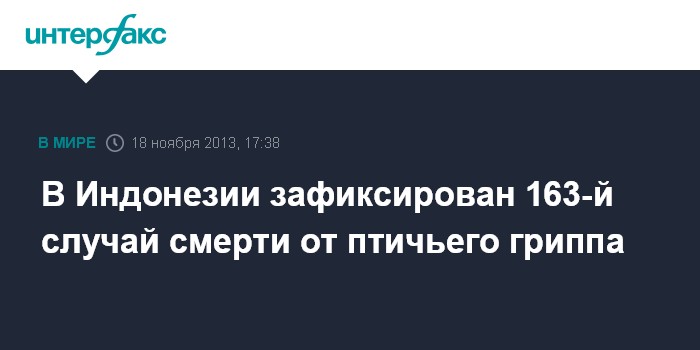 Гонконг. 18 ноября. INTERFAX.RU - Жительница Индонезии, 31-летняя домохозяйка из провинции Западная Ява стала 163-й жертвой вируса птичьего гриппа H5N1 в этой стране, сообщают в понедельник в министерстве здравоохранения страны.