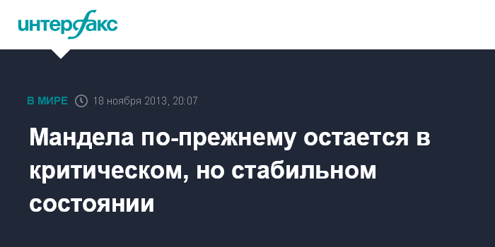 Мандела по-прежнему остается в критическом, но стабильном состоянии
